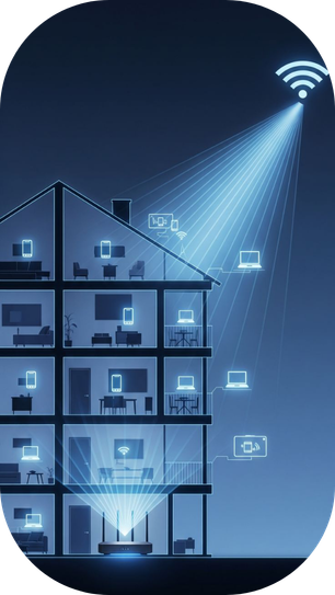Deliver fast, stable, and secure wireless connectivity across your home, workplace, hotel, hospital, warehouse, or any property. We design Wi-Fi networks based on heatmaps, user load analysis, and architectural layouts to guarantee complete coverage and zero dead zones.